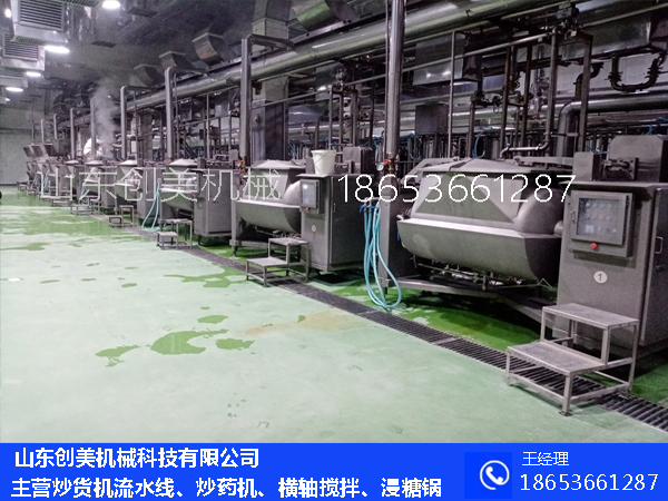 山東創美機械主要生產炒貨機,炒貨機流水線,大型浸糖鍋,及橫軸攪拌炒鍋殺菌鍋等具體可咨詢客服