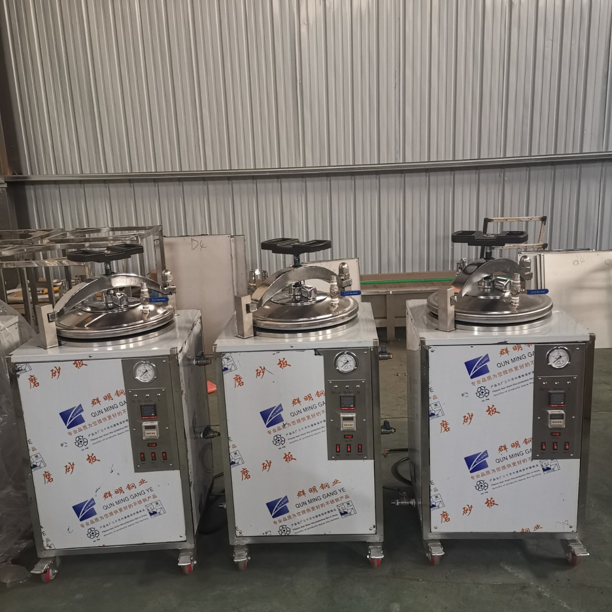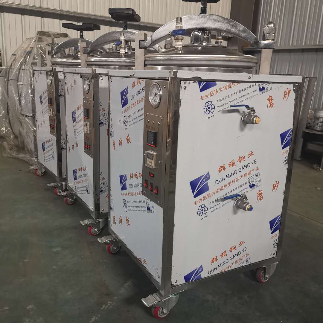 立式殺菌鍋是利用壓縮空氣作壓力的圓筒體殺菌設備,其鍋蓋鎖緊型式是采用自鎖楔塊嚙合方法,開閉起動方便,適應于罐頭、飲料對馬口鐵罐和玻璃罐頭的殺菌處理工作。殺菌鍋結構 鍋體--包括鍋身、鍋蓋、安全連鎖裝置、轉環、軌道、密封圈、滾輪、鎖緊楔塊、蒸汽、噴管、冷卻水管及閘閥等。殺菌鍋操作說明 一般門店對肉類作常壓水煮加熱殺菌處理時都采用本形式的立式殺菌鍋,本設備通過引入壓縮空氣可實現反壓殺菌。如冷卻需在鍋內進行,須用水泵打入鍋頂部的噴水管(或采用水循環系統)。
